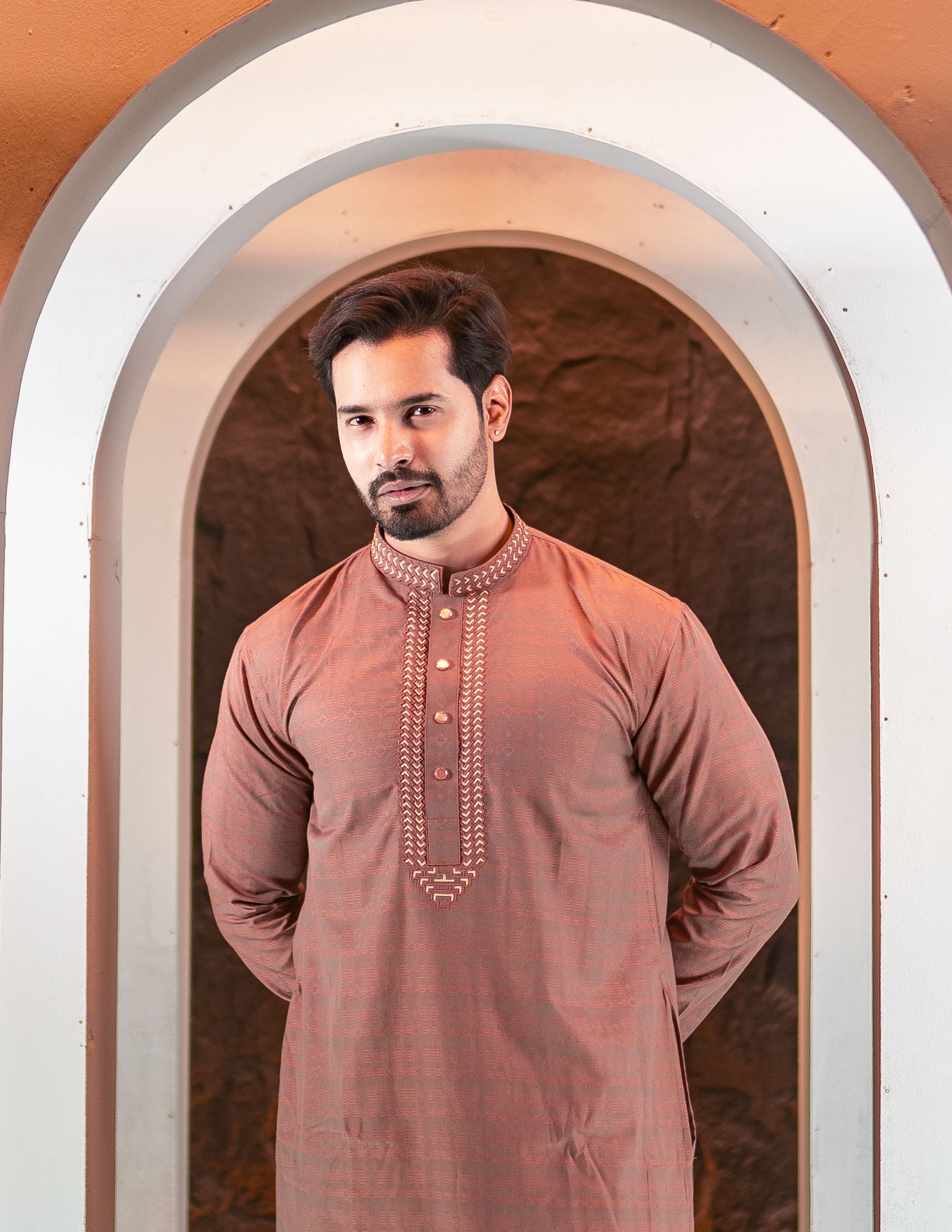 Classic Embroidered Cotton Panjabi – Dusty Rose - 1025