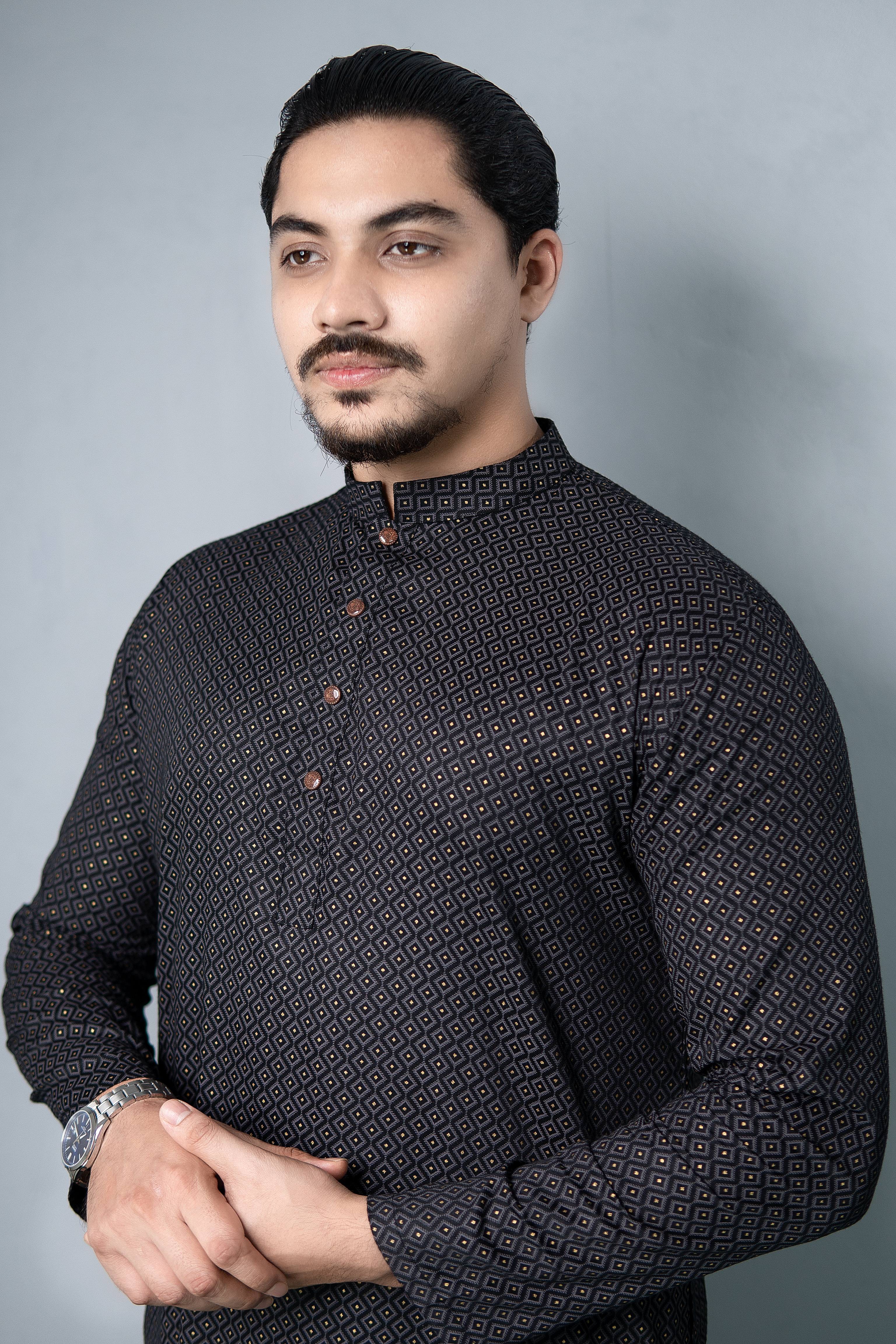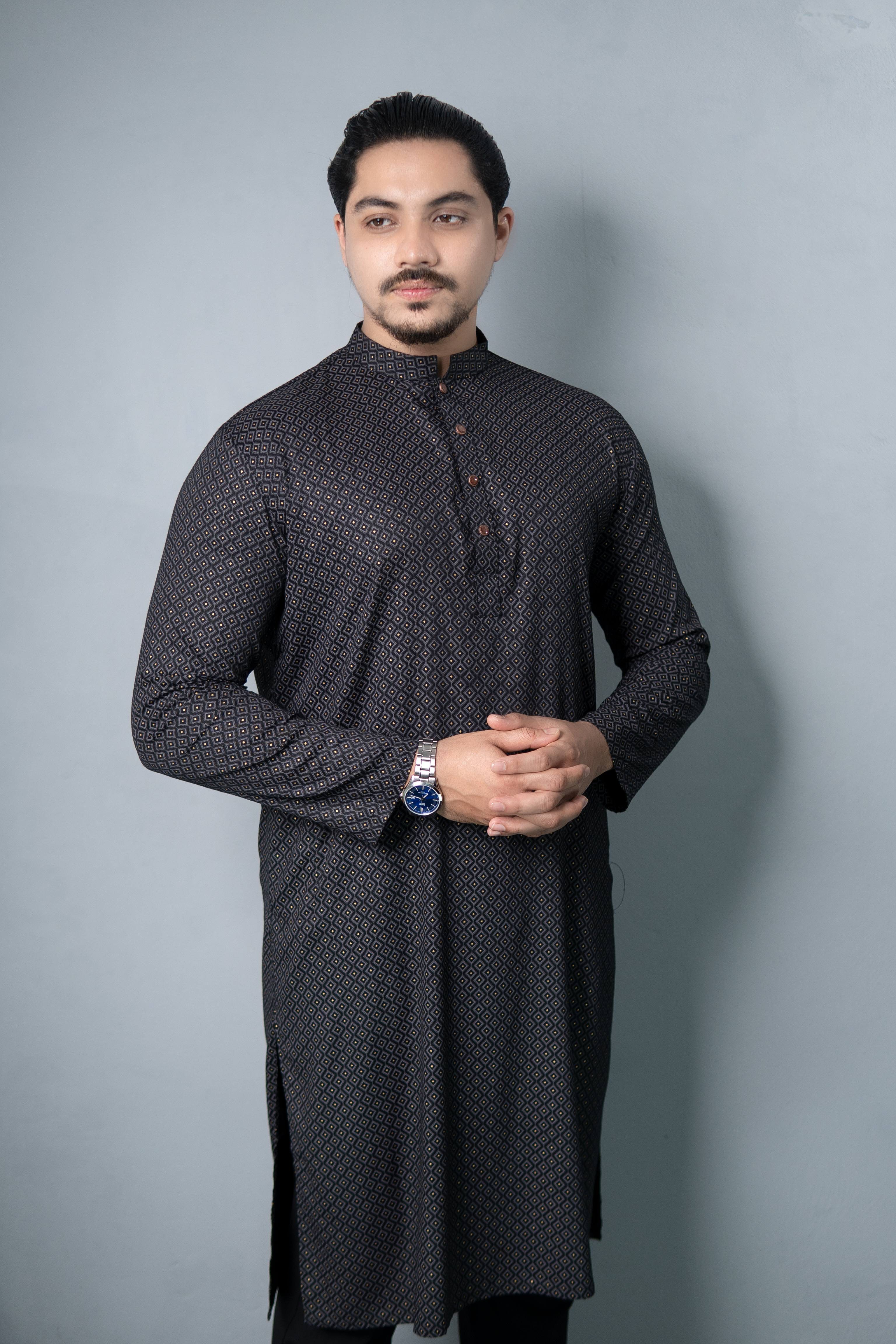 Regular Printed Panjabi Dark Ash - 001 - 1003