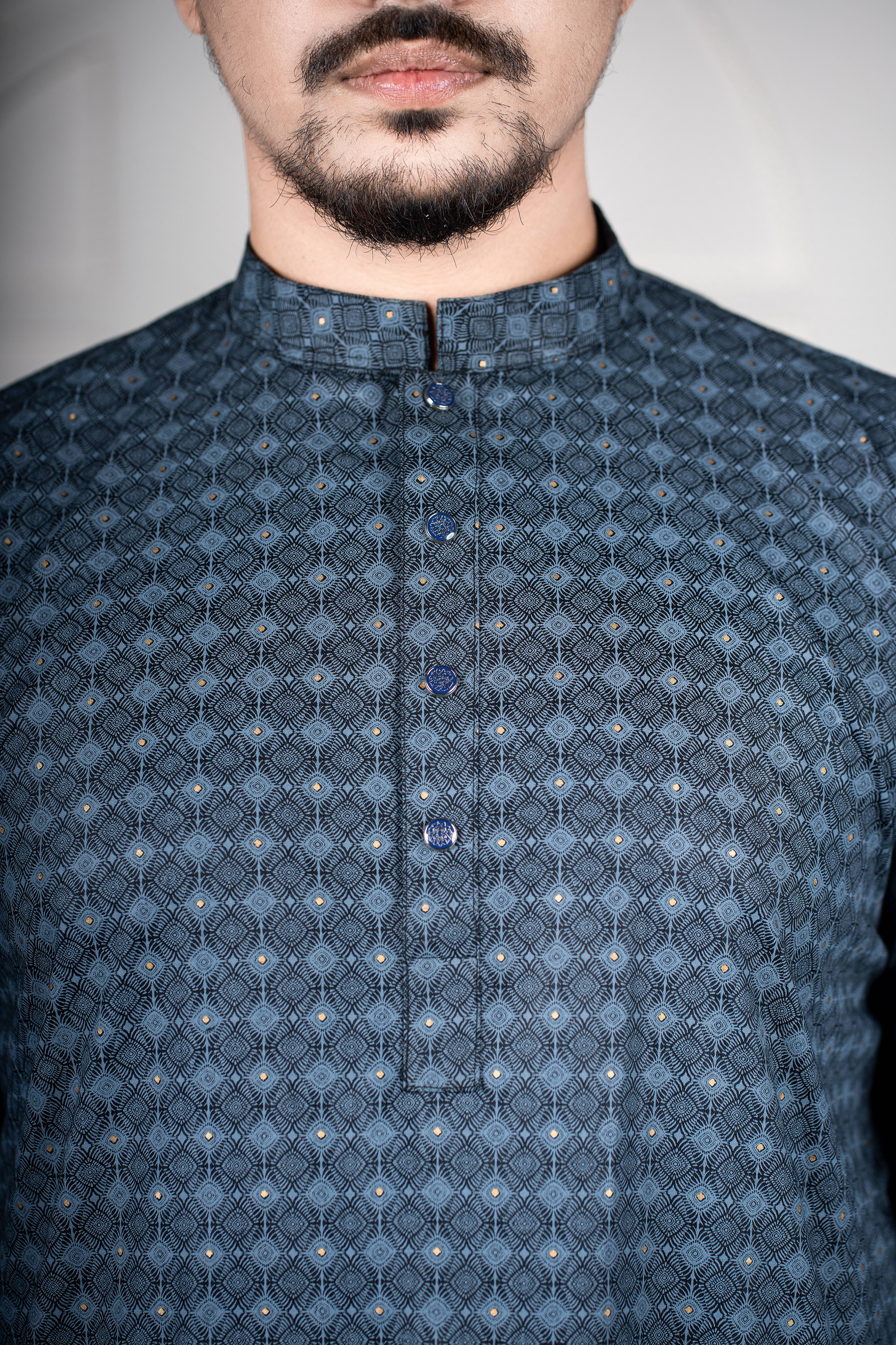 Regular Printed Cotton Panjabi – Black with All-Over Ash Print
