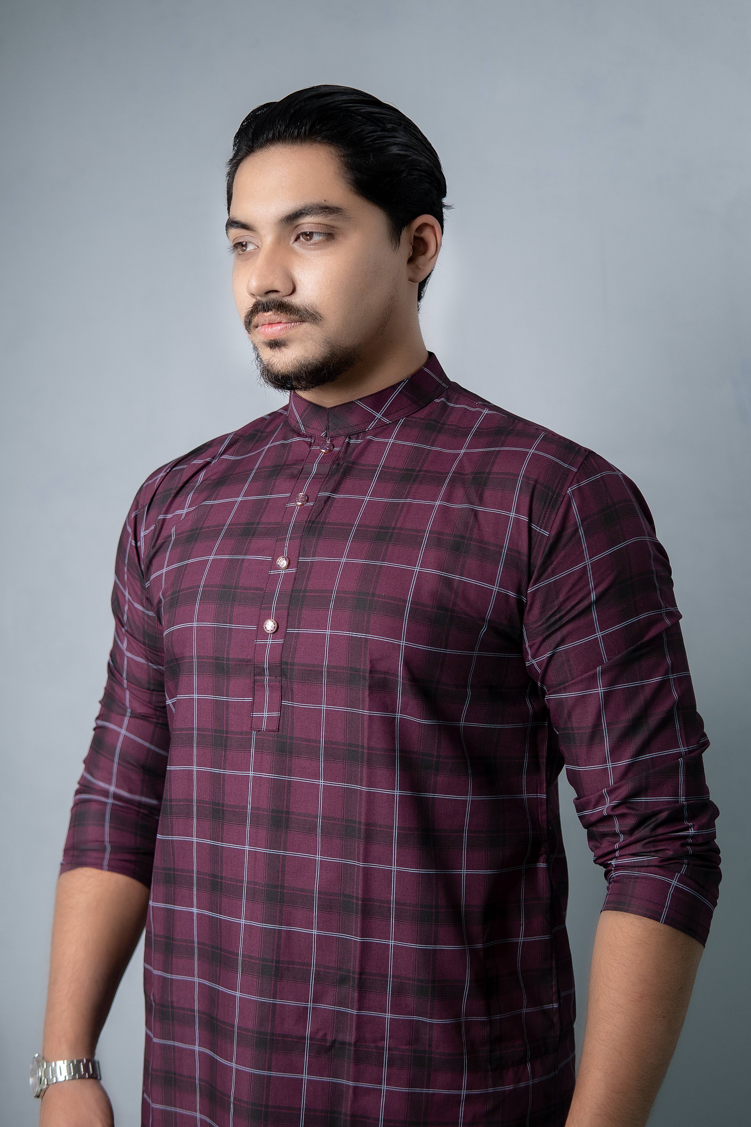 A timeless blend of elegance and comfort, this check-printed Panjabi is crafted to deliver a refined and graceful look for every celebration and occasion.